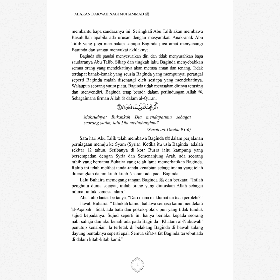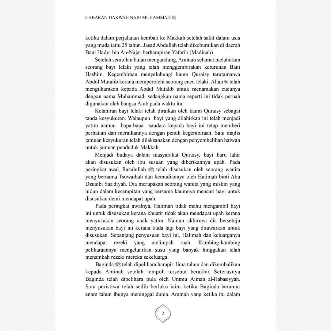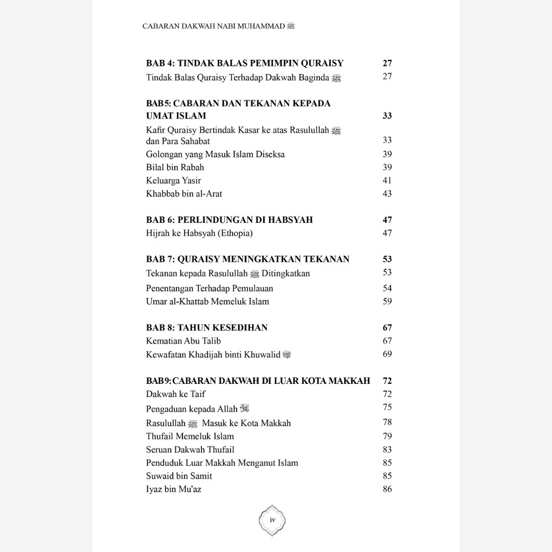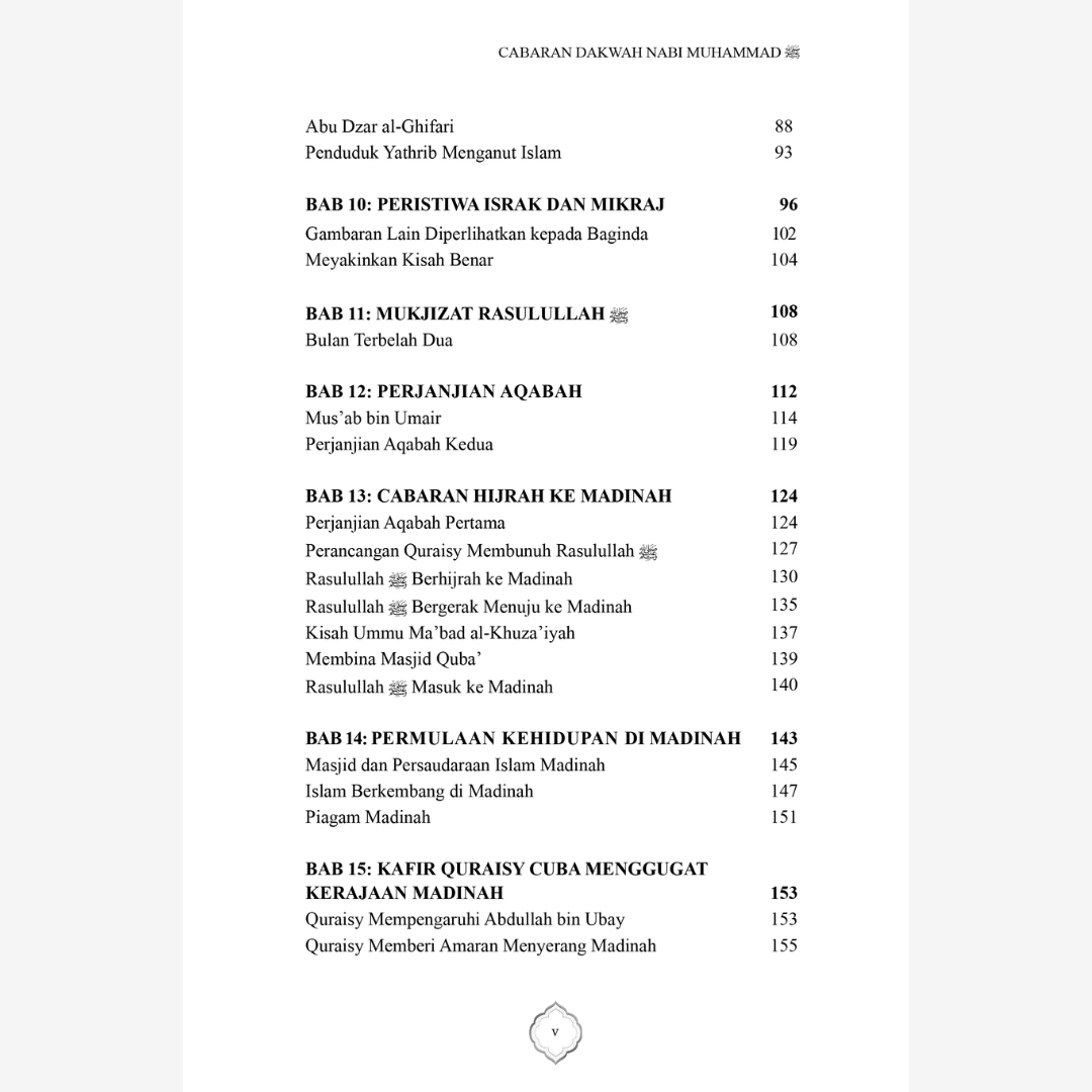 Buku ini ditulis dengan memberikan fokus terhadap cabaran yang telah dilalui oleh Nabi Muhammad S.A.W sepanjang Baginda melaksanakan tugas dan dakwah kepada masyarakat Arab.